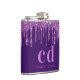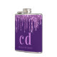 Um fundo roxo profundo com pingos de brilho roxo elegante, aparência de gotejamento de tinta. Texto cor de rosa. Personalize e adicione os iniciais do seu monograma e seu nome. Perfeito para festas de aniversário, chás de noiva e despedidas de solteira.