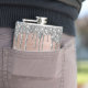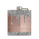 Flask moderna com nome em glitter prateado e monograma. Este design apresenta pingos de glitter prateado sobre um fundo de metal com acabamento em rosa bege com monograma personalizado e modelo de texto com o primeiro nome. Ótimo presente feminino para namorada, mãe, aniversário, casamento, chá de noiva, festa de aniversário de 16 anos, chá de bebê, negócios e para qualquer pessoa que goste de coisas bonitas e glamourosas. Por favor, note que este design é um efeito de foto impresso. Se precisar de ajuda ou de itens correspondentes, entre em contato comigo.