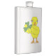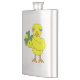 Um belo pintinho amarelo que segura uma pedra-do-mar é um design humorístico para a Rua. Dia de Patrick, festivais irlandeses e celtas, aniversários e feriados.
