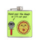 Este bobo de trocadilho humorístico mostra uma fatia de pizza dizendo a uma pizza de desenho animado, "Passe a massa ou eu corto você!" O cortador de pizza veste uma máscara preta como um assaltante e a pizza é fazer rosto assustado na forma de boca redonda de pepperoni, olhos de azeitona e nariz de cogumelo.