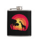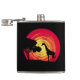 Ilustração do pôr do sol africano com sol vermelho, girafa e decoração da silhueta de árvore em fundo preto. É possível mudar a cor de fundo e adicionar uma diferente à design com sua escolha.