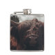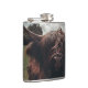 Vintage retro de vacas escocesas, em terra preta. Fotografia de uma majestosa estrada preta de vaca escocesa pastoreando num campo verde de verão com grama na boca e flores de chicória na frente. Postar processado com cores sem som para um efeito retrovisor. Disponível em muitos produtos que variam de impressões a fornecimentos partidários e equipamento desportivo.