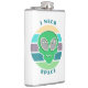 As cores são azul, verde e púrpura com um pôr do sol e face alienígena antigos. Engraçado trocadilho extraterrestre, "Preciso de espaço."
