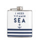Quando o mar é a única coisa que pode curar o que o amarra, pegue nosso chic náutico, erudito balão! Marinho e design branco apresentam a citação "Eu preciso do Mar de Vitamina" na tipografia azul marinho com uma ilustração âncora e uma marca de faixas dignas do iate clube ao longo da parte inferior.