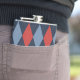Elevate groomsmen gifts or personal milestones with this custom argyle monogram flask. Crisp diamonds wraps seamlessly around the 8oz stainless steel body, framing a bold vertical name and date on the back— centered for a sleek, tailored look.