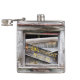 Os restos de um velho sinal na janela de um celeiro dilapidado.