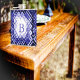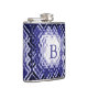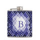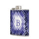 Lembrete, de um tapete ao estilo marroquino, este abstrato, design de monograma, é exibido em brilho, cores de, marinho-azul, lavanda, preto e branco.