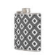 Este frasco de anca apresenta um padrão retrô-abstrato contemporâneo de quadrados pretos e brancos aninhados.