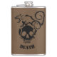 Rato irritado subindo num crânio negro. A boca dos roedores está aberta, com dentes afiados aparecendo. Os bigodes dos ratos estão em formas tribais. Com texto modificável que diz: "Morte"