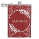 Aproveite as suas bebidas alcoólicas favoritas a qualquer momento com um "Red Elegant Damask Vinyl Wrapped Flask". O Flask design apresenta um elegante fundo úmido e espaço para adicionar o seu nome enfeitado com folhagem delicada. Itens de presentes adicionais disponíveis com este design também.