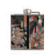 Esta garrafa do quadril caracteriza uma reprodução de um triptych japonês do impressão do woodblock, Oeyama Shutendoji. Criado em 1858 pelo mestre Utagawa Yoshitsuya do ukiyo-e (aka Ichieisai Yoshitsuya), esta cena caracteriza a cabeça gigante do rei Shutendōji do oni de Oeyama que não luta com samurai famoso Minamoto nenhum Yorimitsu e seus aliados.