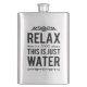 Pessoas que freaking para fora porque você está levando uma garrafa com, arfada, álcool? Facilite suas mentes (em uma distância, de qualquer maneira) com esta engraçada que diz, "relaxa isto é apenas água no tipo grande, corajoso - mas o roteiro pequeno entre "relaxa" e "este" lê, "lá é uma .0001% possibilidade." Tão talvez você pode passar como um teetotaler contanto que ninguém ler os detalhes. Faz um presente original do partido, ou um grande presente para partying!