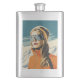 Legal retro gráfico como um poster dos anos 60. Um retrato de uma jovem mulher com gorro na neve