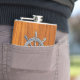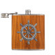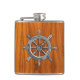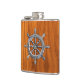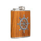 Um cromo prateado de estilo náutico moderno, como o aplicado num decor de impressão de madeira de teak, para um belo presente de frasco personalizado. Use o link "Perguntar a este Designer" para entrar em contato conosco com suas solicitações especiais de design ou para obter assistência com qualquer das suas necessidades de personalização.