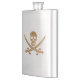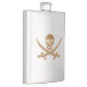 O ouro brilhante coloriu o crânio e cruzou espadas no preto. Para o pirata discriminador.