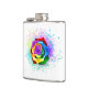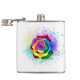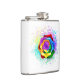 Rosa grande e florescente com pétalas arco-íris sobre fundo branco, pintadas com pedaços de tinta colorida e brilhante. 3d