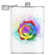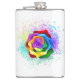 Rosa grande e florescente com pétalas arco-íris sobre fundo branco, pintadas com pedaços de tinta colorida e brilhante. 3d
