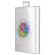 Rosa grande e florescente com pétalas arco-íris sobre fundo branco, pintadas com pedaços de tinta colorida e brilhante. 3d