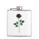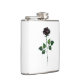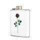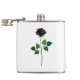 Rosa preto simbólico, desenhado artisticamente, com caules verdes e folhas sobre fundo branco. Rosa preto.