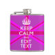 Seu personalizado "Fique Calmo" dizendo em uma vibrante decoração de união rosa-rosa. Um estilo "Manter Calmo" personalizado dizendo em um presente gentil. Humorístico ou caprichoso experimente suas palavras criativas em duas linhas editáveis de texto. Lembre-se de usar letras CAPITAL para obter melhores resultados. Use o link "Perguntar a este Designer" para entrar em contato conosco com suas solicitações especiais de design ou para obter assistência com seu projeto de personalização.