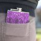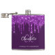 Um fundo roxo profundo. Decorado com gotas de brilho falso e efeito de tinta pingando. Personalize e adicione um nome, iniciais de monograma e nome completo. O primeiro nome é escrito com um estilo de letra manuscrita moderna.