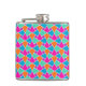 Um Hip Flask chic, com um padrão Islâmico tradicional, cor-de-rosa brilhante, laranja, azul turquesa e verde-claro, esboçado em branco; da coleção Posh & Painterly 'Islâmica'.