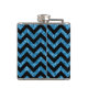 Hip e Trendy Chevron Glitter Look Flask. Este frasco legal apresenta um padrão de zag em forma de guiões em cima de um fundo azul de brilho digital.