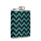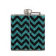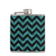 Hip e Trendy Chevron Glitter Look Flask. Este frasco legal apresenta um padrão de zag em forma de guincho em cima de um fundo brilhante de turquesa digital.
