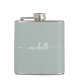 Elegante Minimalista Moderna Garrafa Personalizada com Nome em Script Monograma Verde Sage. Apresentando o primeiro nome em uma linda caligrafia com fonte de cauda swash (ou tipografia) em fundo na cor verde sage ou verde poeirento. Estes são fáceis de personalizar. Ótimo presente feminino e elegante para festa de despedida de solteira, presente de aquecimento da casa, também para festa de despedida de solteira, aniversário, dia das mães, festa de aniversário de 16 anos, casamento, festa de chá de noiva, para festa de formatura e é para a garota que ama coisas únicas e elegantes.