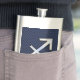 Um cromo prateado como Sagittarius zodiac num marinho de fundo de fibra de carbono azul, em estilo automotivo. Um design moderno urbano para uma ideia personalizada de presente de aniversário de excelente. Use o link "Perguntar a este Designer" para entrar em contato conosco com suas solicitações especiais de design ou para obter assistência com seu projeto de personalização.