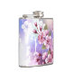 Articulação artificial, ramo de cor-de-rosa, cereja floresce sobre fundo picturesco, texturizado, pintado com tinta branca, rosa e azul. Pink Sakura