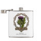 Um Tistle Escocês numa moldura de "Botão Céltico" com a torrada gaélica escocesa "Slainte Mhath" (pronuncia-se slan-ja-va), o que significa "Boa Saúde" que adornam este frasco de vinilo. Perfeito para qualquer um de descendentes escoceses ou fãs de Outlander.