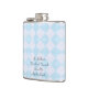 Esta garrafa de aço inoxidável é decorada com um teste padrão azul e branco retro da verificação. O texto diz "se início em você não suceda, não lhe dê uma outra bebida…" Presente do divertimento para alguma ocasião. Fácil mudar ou suprimir do texto do exemplo. Todos os direitos reservados © Alan 2013 & Marcia Socolik