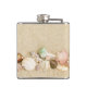 Uma fila de belos conchas, arranjadas num fundo de areia de praia.