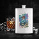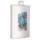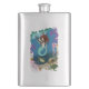 Uma sereia de cabelos vermelhos está entre cavalos marinhos, peixes-estrelas, tartarugas, águas-vivas e tesouros em um pano de fundo azul