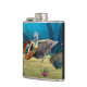 Dois amigos, uma bela sereia nadando com um golfinho num oceano de fantasia azul