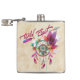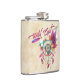 Este Único "Um dos Tipos" Flask Sudoeste! Possui uma Seta Colorida e um Capacete de Sonho Enfiado Entre Penas Turquesa, Laranja, Rosa e Púrpura com a Cotação..."Espírito Selvagem" num Fundo Sandstone! Design de Arte Gráfica Original do Artista Kerry Miller.