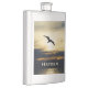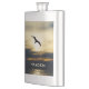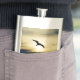 Silhueta maravilhosa de uma grande ave marinha voando sobre o mar ao pôr do sol.