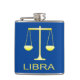 Este maravilhoso frasco de anca apresenta uma imagem de arte digital de um par de balanças coloridas em ouro com a palavra Libra em texto dourado. Um design divertido para pessoas celebrando um nascer de aniversário entre 23 de setembro e 22 de outubro, sob o signo estelar de Libra.