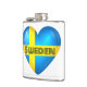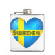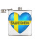 bandeira nacional suecia num recorte em forma de coração com sobreposição de texto em estilo retrô