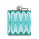 Este Geométrico Diamantes & Starbursts Flask tem todo o bichinho de algo que é gatinho e encantador. A design inspirada na safra apresenta um fundo azul-pavão mod com azul-claro, hexágonos alongados, em camadas com diamantes-tartaruga, e estrelas azuis de pavão. É um caleidoscópio de retro-bondade! Este design do estilo Palm Primavera de 1950 e 1960 parece que seria igualmente em casa com uma placa moderna de meio século ou na casa da sua família de televisão clássica favorita.
