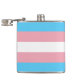 Frasco de vinilo com a bandeira do orgulho transgênero. Bandeja rosa, branca e azul do movimento do orgulho trans