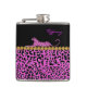 Frasco de moça-chic feito em preto, no topo, e padrão onça-pintado rosa e preto, no fundo, com gráficos de uma fita de pérolas reluzente com tom de ouro, entre os dois fundos. Gráficos de um gato pintado de onça-pintada decoram o texto superior e rosa está pronto para personalizar para você mesmo ou como uma ideia elegante de presente.