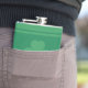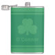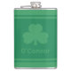 Um frasco de uísque com trevo personalizado apresenta um simples monograma de sobrenome que pode ser personalizado, enquadrado por listras masculinas. Faz um excelente presente para o seu rapaz irlandês favorito. Um cúmplice perfeito para celebrar Ruas.