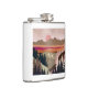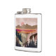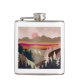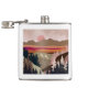 Uma paisagem abstrato com cores e texturas únicas mostrando uma paisagem natural com sol ascensão e dois gansos em tons de laranja, bege, marrom e rosa.