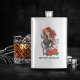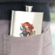 Uma mulher cabeleira vermelha vestindo um tanque de cinza e denim jeans azuis. Ela tem duas capas de tatuagens no braço cheio. Tudo desenhado num novo estilo escolar.