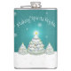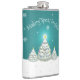 Aproveite a sua bebida adulta favorita com este Festivo Teal Snowy Christmas Tree Flask. O Flask design apresenta um trio de Árvores de Natal decoradas em neve com flocos de neve em queda contra um fundo de terra e o ditado "Fazer Spirits Brilho" que você pode deixar ou personalizar com seu próprio ditado. Itens adicionais de presentes e feriados disponíveis com este design também.