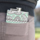 Este design é feito com a cor do Aqua do ano. Um verde - brilho azul que sparkles na parte inferior, e paisley preto e branco com um teste padrão do fundo do verde do aqua na parte superior. O centro é deixado para a personalização/personaliza cercado com os cristais de rocha brancos do diamante (o IMPRESSÃO da FOTOGRAFIA)
