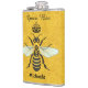 Esta de "garrafa doce da abelha rainha" da abelha tem uma grandes abelha e coroa sobre uma luz, fundo brilhante do favo de mel. A abelha amarela e preta tem as asas branco-azuis do gossamer que são espalhadas para fora como ela estão prontas para voar.