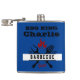 Rei churrasco - Título editável, nome e data (talvez a data de nascimento do destinatário?). Fundo azul com utensílios e chamas.